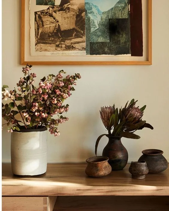 I try to advise clients to stay away from trends and do your own thing! I love this quirky entryway that mixes a traditional rug pattern with florals, checks, antlers, and vintage art.