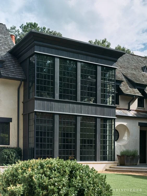We just moved into a home that is mostly stucco with a little brick, so of course I have been noticing home exteriors with stucco lately. This exterior is so pretty with its creamy stucco walls and dark stained wood.