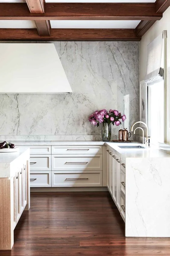 Proof that when the bones are right, you don’t need all the fluff. Those wood beams and marble in this kitchen speak for themselves.