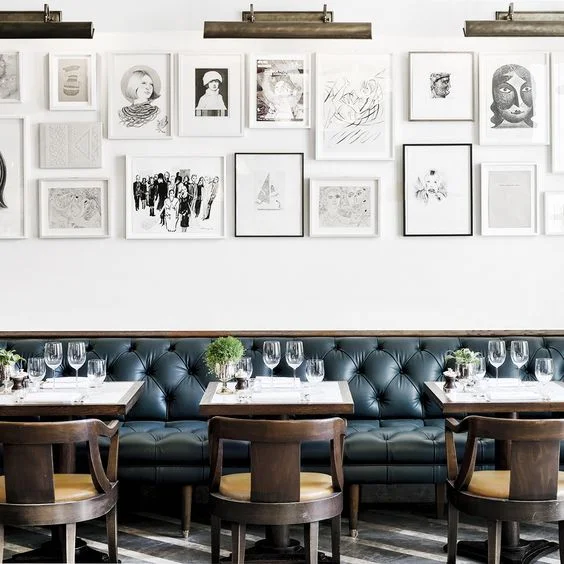 It’s a dining area in a restaurant in the Istanbul Soho House hotel. I love the dark tones in the chairs, and this mix between teal and navy is one of my favorite colors. I’m not a huge fan of yellow, but when it’s more of an ochre shade, I love it in small doses. I can’t say that I have ever thought of mixing those two colors (which is why I love this so much!). I used the palette to interpret it into a bedroom design. Sources linked at the bottom!
