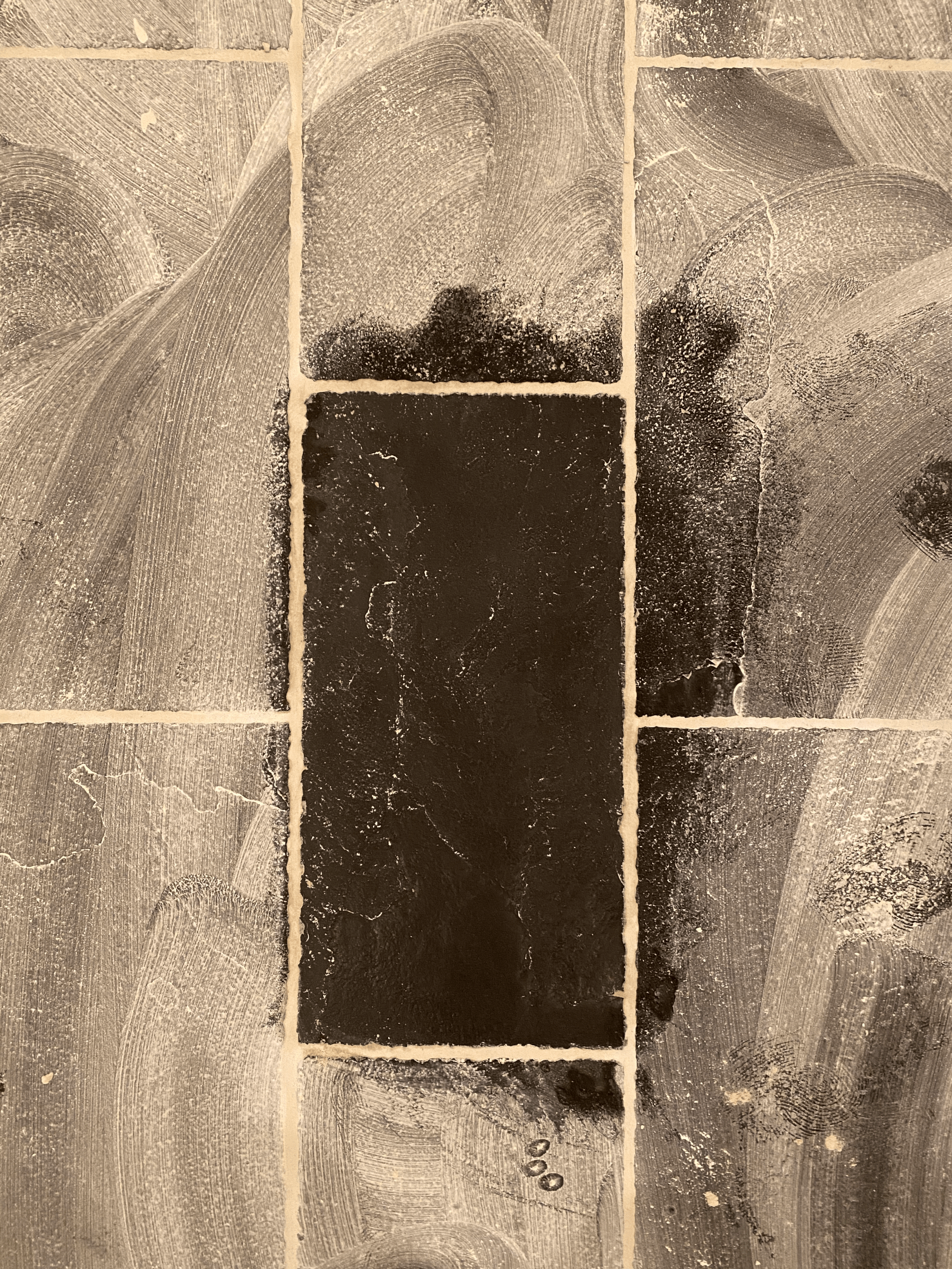 We cleaned off one tile to see the true effect of the grout in the chiseled edges…